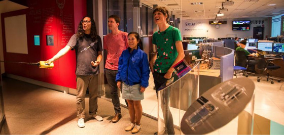 Thirteen trillion electron volts. That's the energy which the Large Hadron Collider smashes together protons—new, this year, 2015. Right now, a hundred meters below us, superconducting magnets just like these are doing the heavy lifting required to get these proton beams to bend around the twenty-seven kilometer tunnel and allow them to get us to almost the speed of light. And to thirteen TeV [teraelectronvolts], which is the highest energy that humans have ever used in a collider experiment. So what are we looking for? Things like dark matter, dark energy, super symmetry, quantum black holes, large extra dimensions... But really, we're just pushing the boundaries of human knowledge. We don't know what we're going to find at thirteen TeV at the LAC.